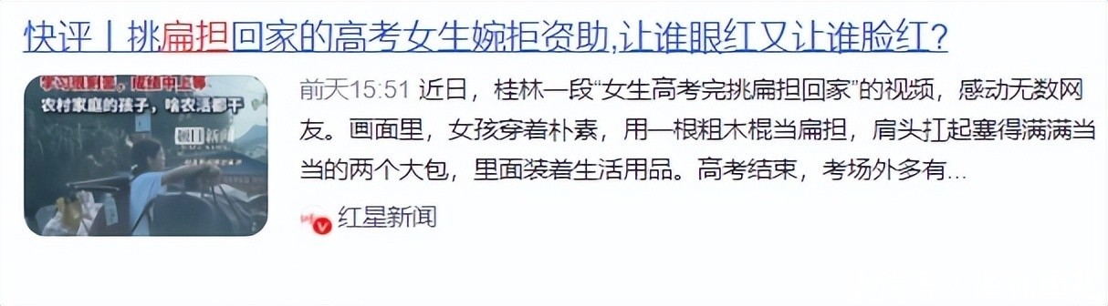 2、快评丨挑扁担回家的高考女生婉拒资助,让谁眼红又让谁脸红?——红星新-06-12 15:51